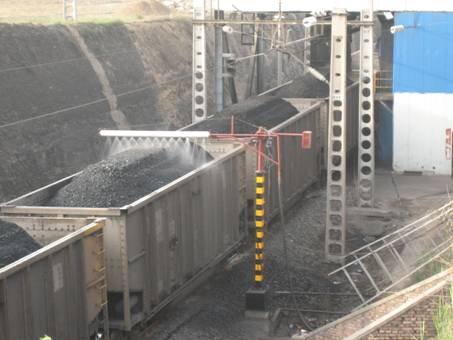 ﹡山西中煤順通煤業(yè)有限公司鏟車裝煤點進行的噴灑試驗:設備具有自動識別機車鉤檔功能,根據(jù)車速自動調(diào)節(jié)噴灑量,能夠均勻地將揚塵覆 |