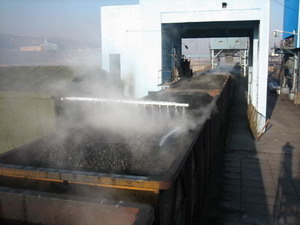2007年在神華集團神東公司榆家梁礦進行正式噴灑。該礦年裝車能力可達一千五百萬噸,其裝車形式為筒倉。設備采用非電氣化區間龍門式噴灑系統。其使用效果良好,設備及制劑穩定。對沿線及隧道的污染明顯減輕,年節約煤損約10萬噸,取得了顯著的經濟效益和社會效益。 |